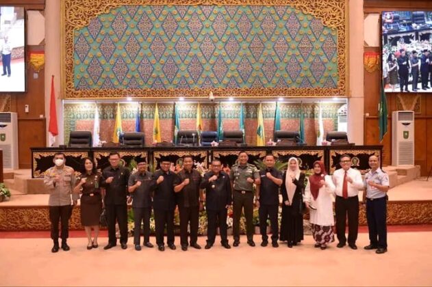 iniriau.com, PEKANBARU - Dewan Perwakilan Rakyat Daerah (DPRD) Riau mengelar rapat paripurna penyampaian usulan tentang pemberhentian Gubernur Masa Jabatan 2019-2024. Paripurna yang digelar Senin (5/3/2024) dihadiri Gubernur Riau (Gubri), Brigjen TNI (purn) Edy Natar Nasution dan dipimpin oleh Wakil Ketua DPRD Riau Agung Nugroho.