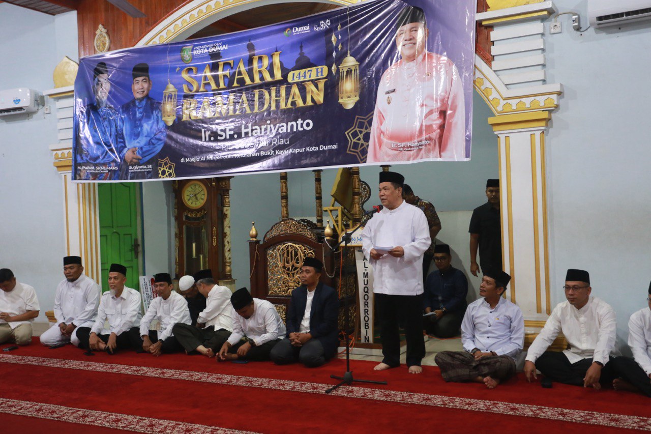 iniriau.com, DUMAI - Pelaksana tugas (Plt) Gubernur Riau, SF Hariyanto, mengadakan Safari Ramadan 1447 H di Masjid Al Muqorrabin, Kecamatan Bukit Kapur, Kota Dumai, Kamis (26/2/2026). Kegiatan ini sekaligus menjadi ajang silaturahmi antara pemerintah dan masyarakat serta wadah untuk menyerap aspirasi warga.